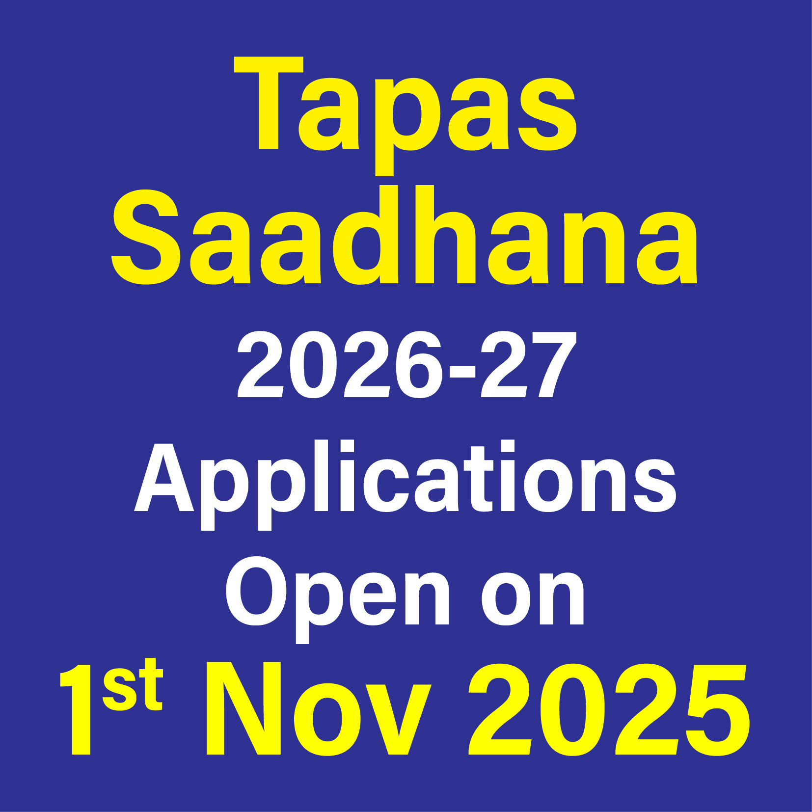 ಆರ್ಥಿಕವಾಗಿ ಸಬಲರಲ್ಲದ ಪ್ರತಿಭಾವಂತ ಹುಡುಗ/ ಹುಡುಗಿಯರಿಗೆ IIT ಹಾಗೂ ಡಾಕ್ಟರ್ ಕನಸನ್ನು ನನಸು ಮಾಡುವ ತಪಸ್-ಸಾಧನಾ 2026-27ನೇ ಸಾಲಿನ ಪ್ರವೇಶ ಪರೀಕ್ಷೆಗೆ 1ನೇ ನವೆಂಬರ್ 2025ರಿಂದ ಅರ್ಜಿಗಳನ್ನು ಆನ್ಲೈನ್ನಲ್ಲಿ ಸ್ವೀಕರಿಸಲಾಗುವುದು.