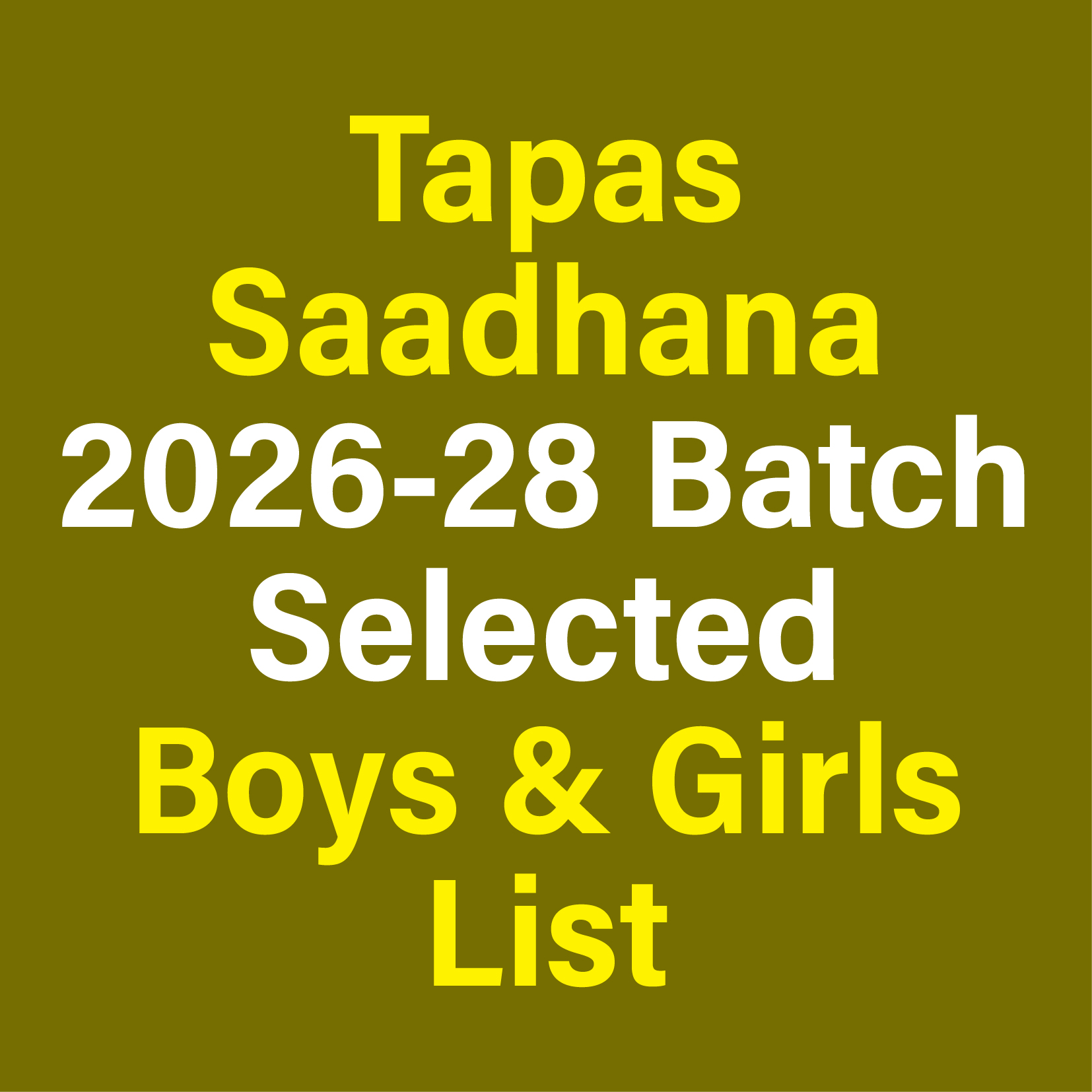 Tapas Saadhana 2026-28 Batch Selected Boys & Girls List